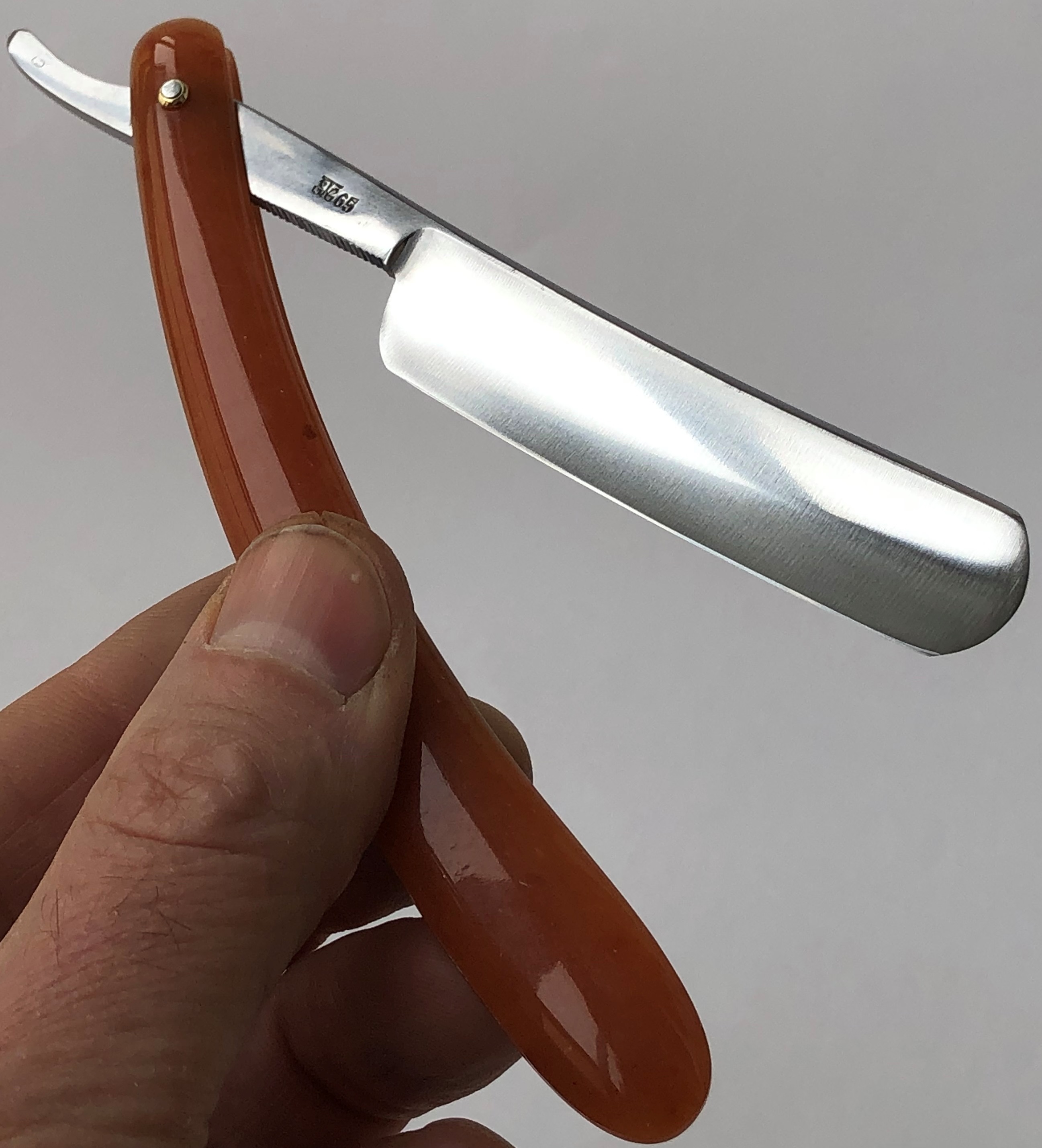 (донор довоенный, примерно 20-30-е годы).Плашки оправы прочные и достаточно толстые,без трещин и дефектов. Природный рисунок кости невероятной красоты.Понятно, что японцы не ставили на свои бритвы (по крайней мере я не видел ничего подобного) ручки из натуральных материалов,но в этот раз захотелось чего то неординарного.Из за свой формы клинка, а также размеров оправы,бритва достаточно тяжёлая и приятно лежит в руке.Бритва заточена и лично протестирована. Бреет прекрасно и без вопросов.