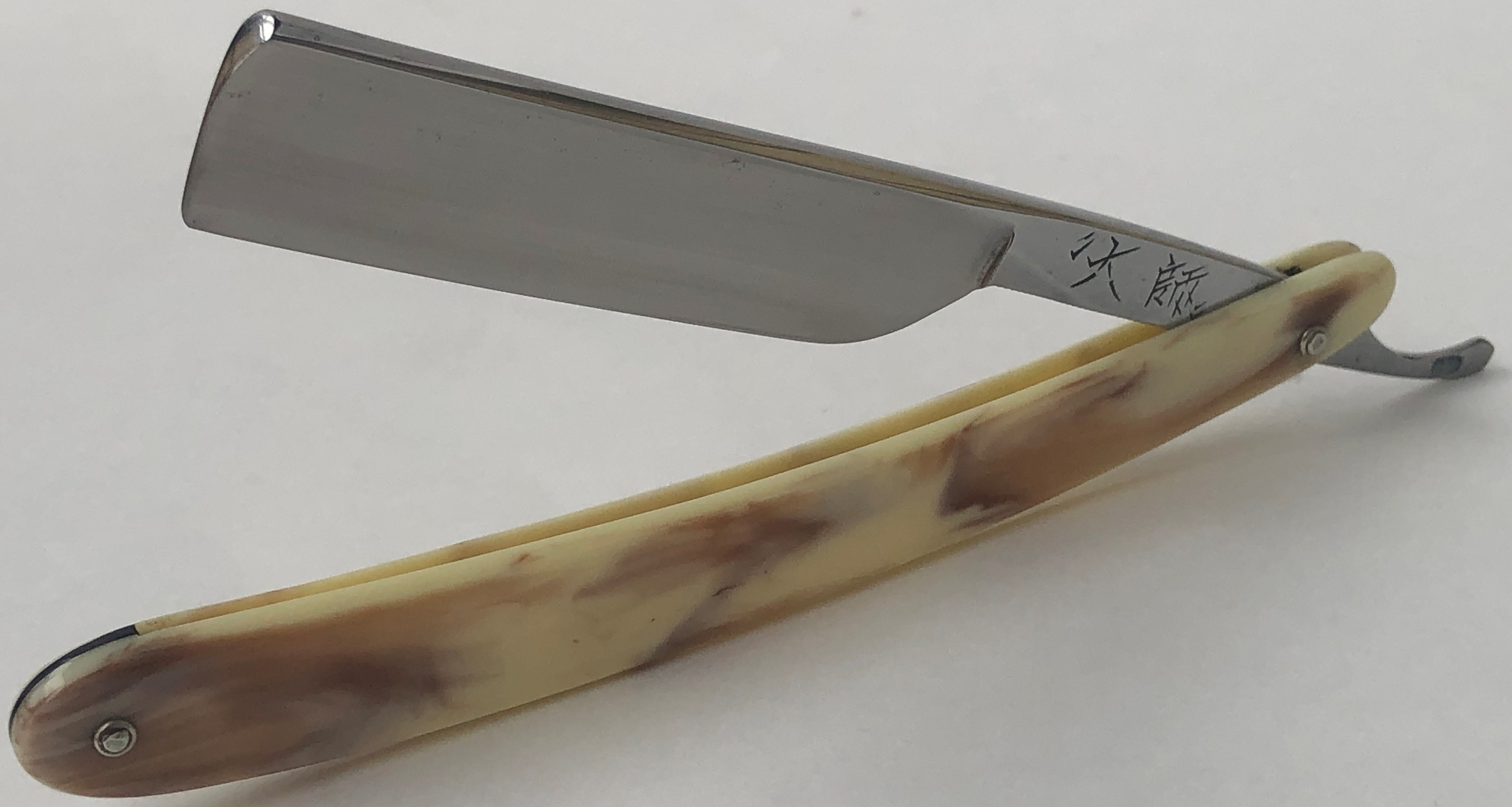 Бритва в прекрасном и непользованном состоянии. Не разбиралась и не ремонтировалась.Только прошелся вручную полиролью и все.Идеальная геометрия клинка:кромочка равномерна по всей длине.Сталь чистая, без видимых дефектов. Высококачественная и элегантная японка, с красивой оправой.Бритва среднего+ размера, способная порадовать не только опытного пользователя, но и новичка. Будет заточена и готова к бритью.
