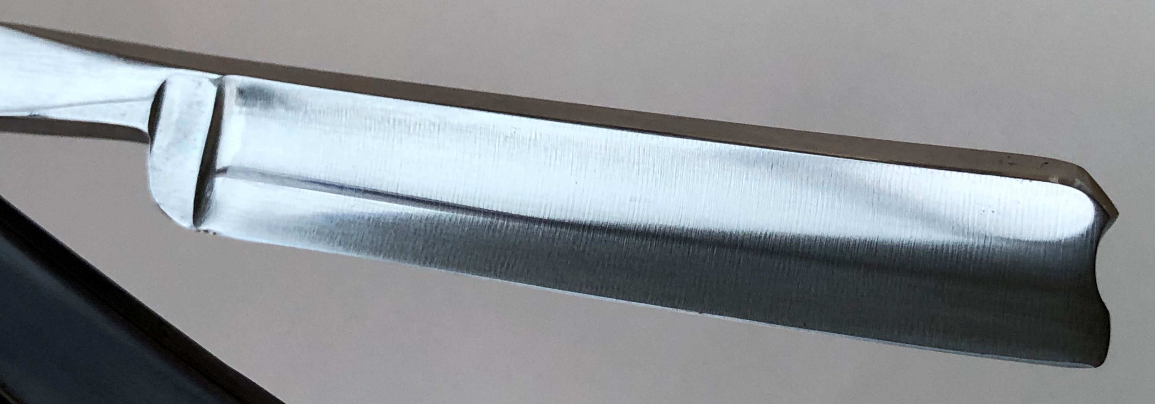 Сталь чистая, без видимых дефектов. Кромочка равномерна по всей длине.Бритва для опытных пользователей в основном. Заточена и готова к бритью. Не пропустите старинную бритву, с отличной, высококачественной сталью.