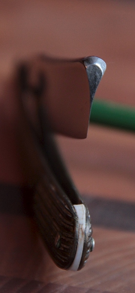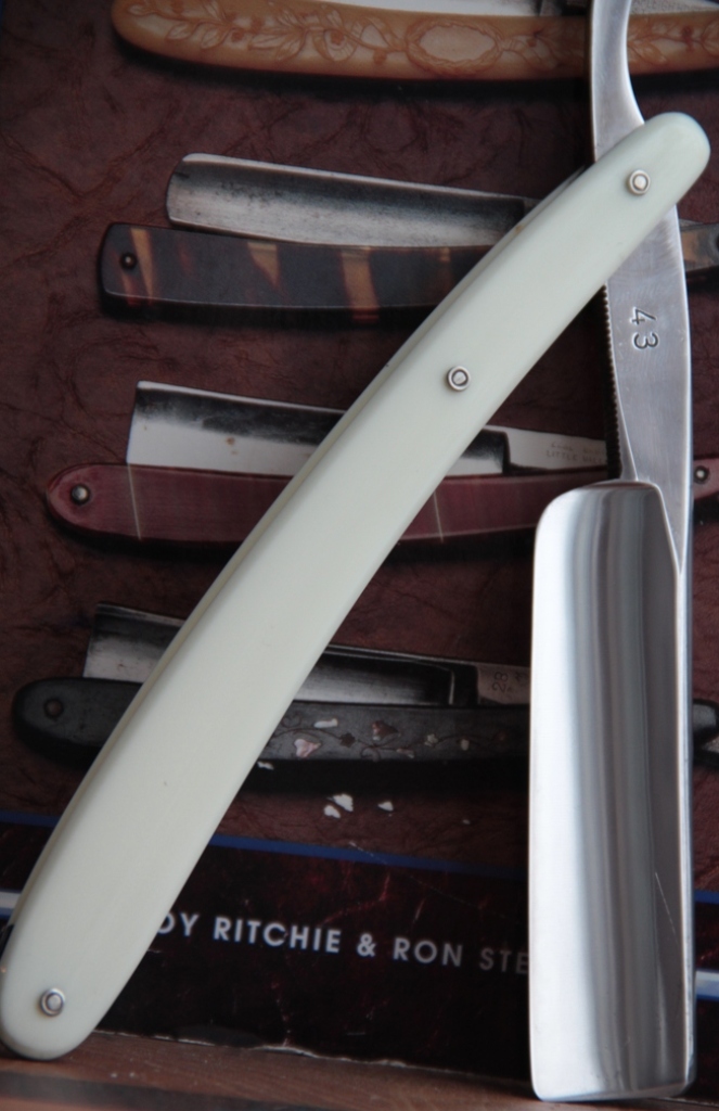 С бритвой ничего не делал, не разбирал и не ремонтировал. Всё родное. Только немного протер полиролью вручную полотно от патины. Небольшие потемнения на металле остались, но для бритвы такого возраста, из углеродки, это нормально,да и не хотелось портить заводской гринд.