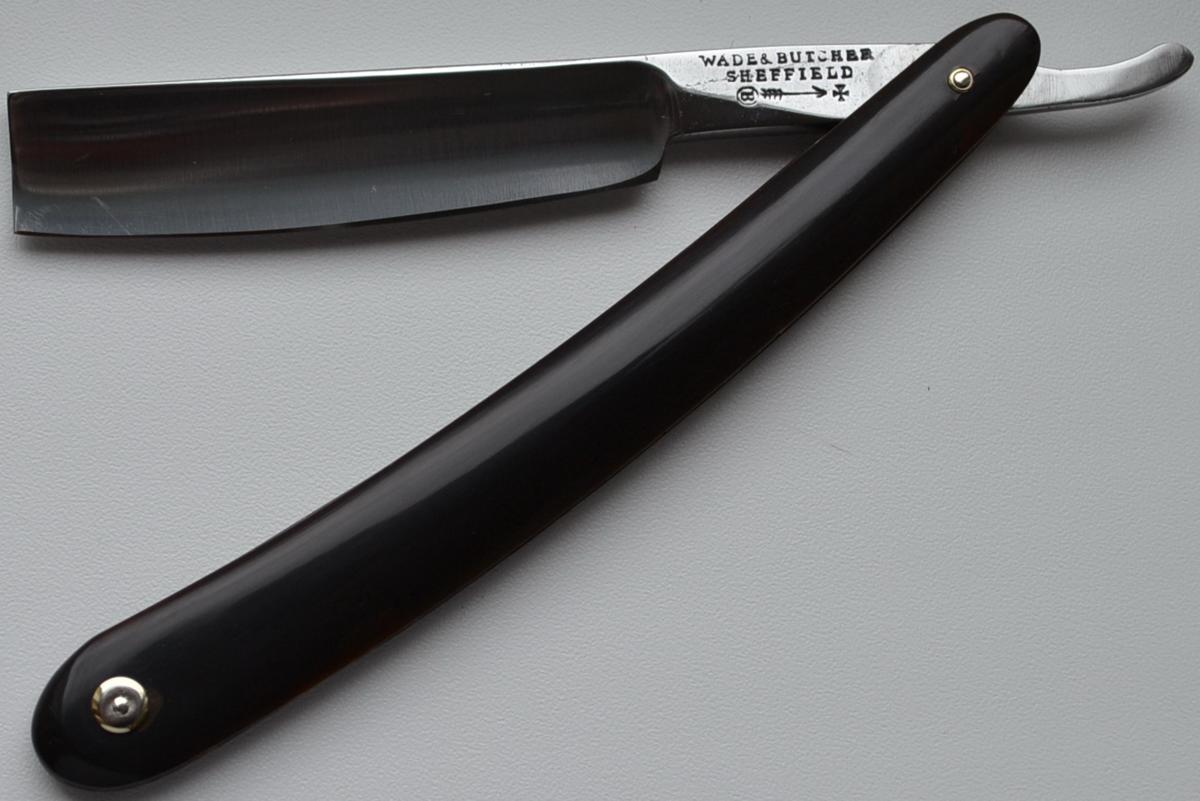 Wade&Butcher Англия, ширина 4/8, ручка-эбонит. Бритва ни разу не точилась. Из недостатков: плохо просматривающееся клеймо, его не терли не шлифовали, просто оно такое с рождения, да, и от этого он СТИЗом не станет. Продано Батчер Show