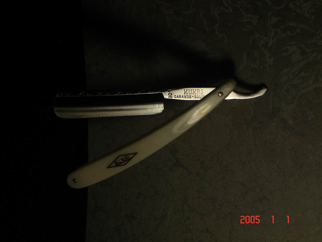 Скорее всего бритва в пользовании не была ,заводская шлифовка , бритва была разобрана , отполирована , ручка восстановлена , дополнил конструкцию шайбочками на осевом пине , что бы избежать трения ручки о полотно бритвы .