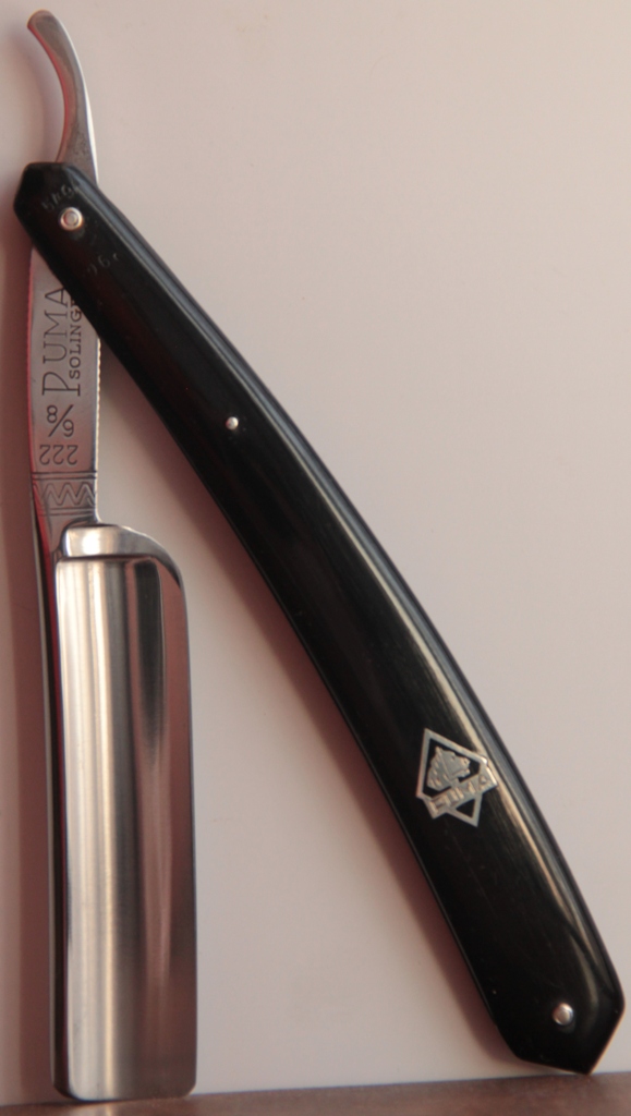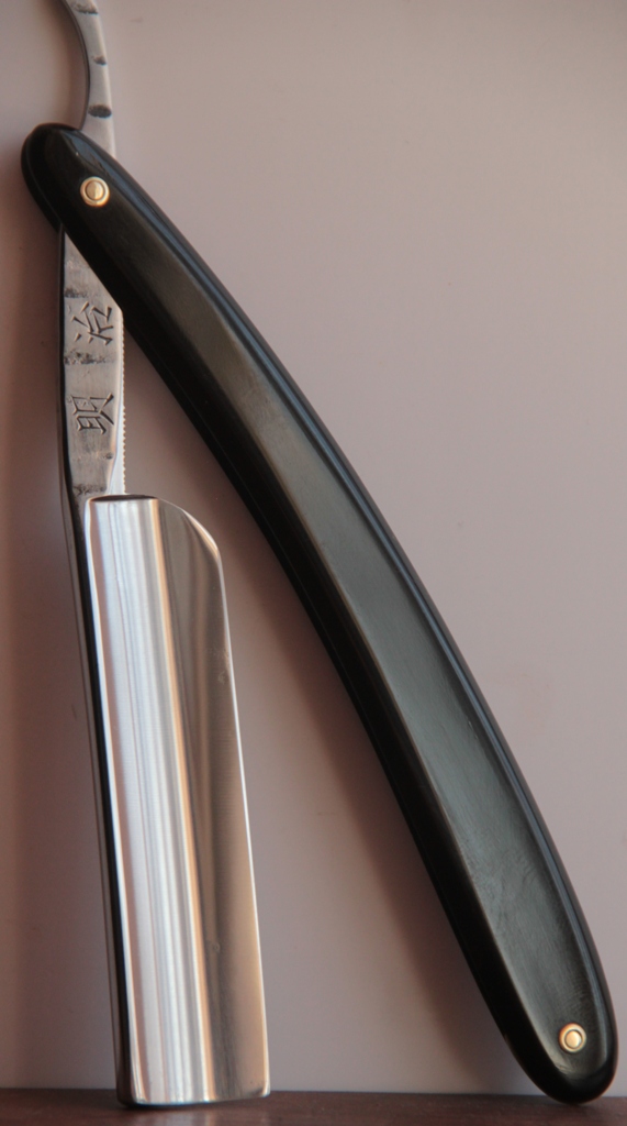 Совершенно нетронутая бритва ни временем, ни заточными камнями. Как по мне, так не только исключительная по красоте бритва, но также и отличный инструмент в опытных руках. Прекрасное, мягкое бритьё. Проверено не раз.