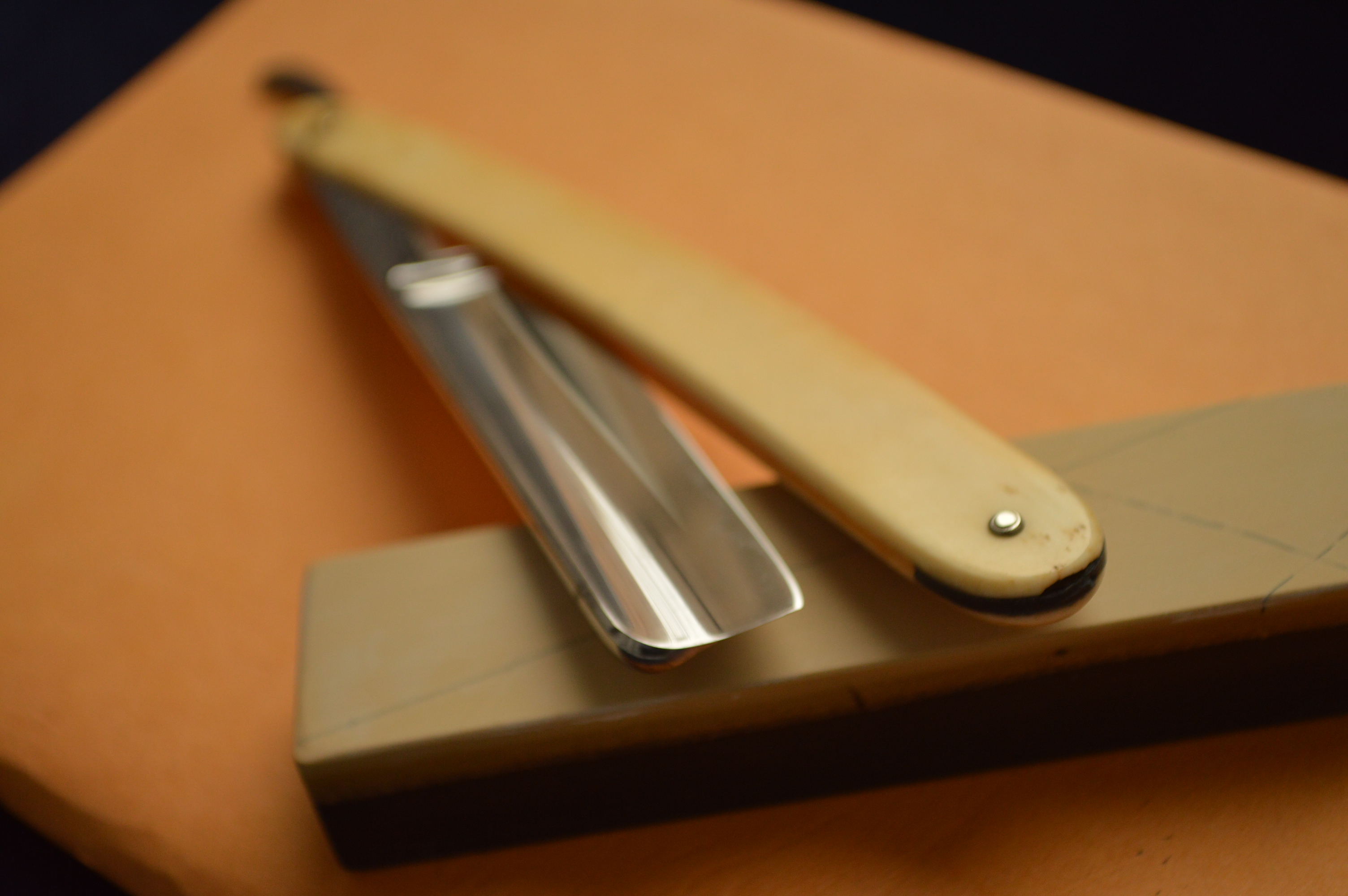 Бритва в строение клин. Ширина полотна – 7/8. Сама сталь в лучших традициях французских бритв: вязкая, мелко-зернистая, бритье превосходно мягкое и чистое. Ручка кость в замечательнейшем состоянии.