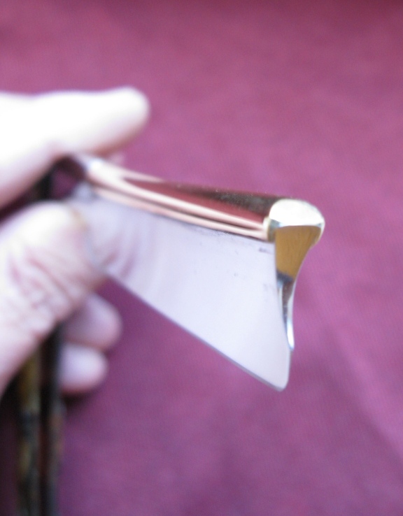ручка - целлулоид, произведена чистка и реставрация клинка, наточена (возможно ранее полотно было укорочено). Ширина полотна примерно - 18мм., обушок - 4мм., длина реж.кромки - 6,5см. ПРОДАНО Цены на, выставленные выше, Wade & Butcher и С.Friedrich Ern снижены. Spoiler Show
