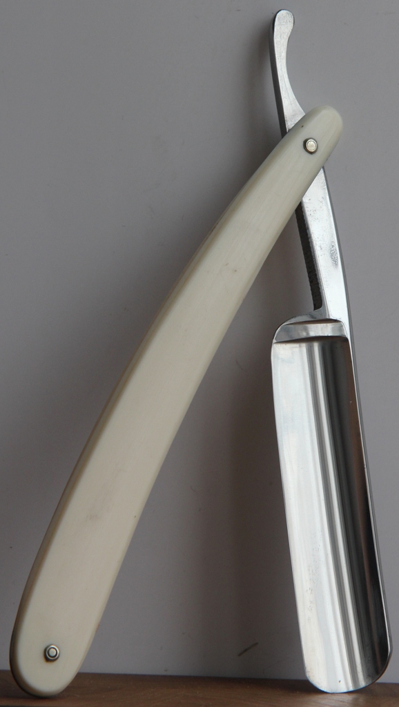 Ширина полотна-20-17 мм Толщина обушка-5.5 мм Бритва пришла в совершенно не пользованном состоянии: ничего не снималось, не ремонтировалось. всё родное. Немного освежил металл и усё.Оправа-натуральный рог, сталь-углеродка-без каких либо дефектов. Бритва заточена впервые и готова к бритью. Сталь достаточно мягкая, что придаёт комфорт и мягкость при бритье. Цена -ПРОДАНА160$ с доставкой. Spoiler Show