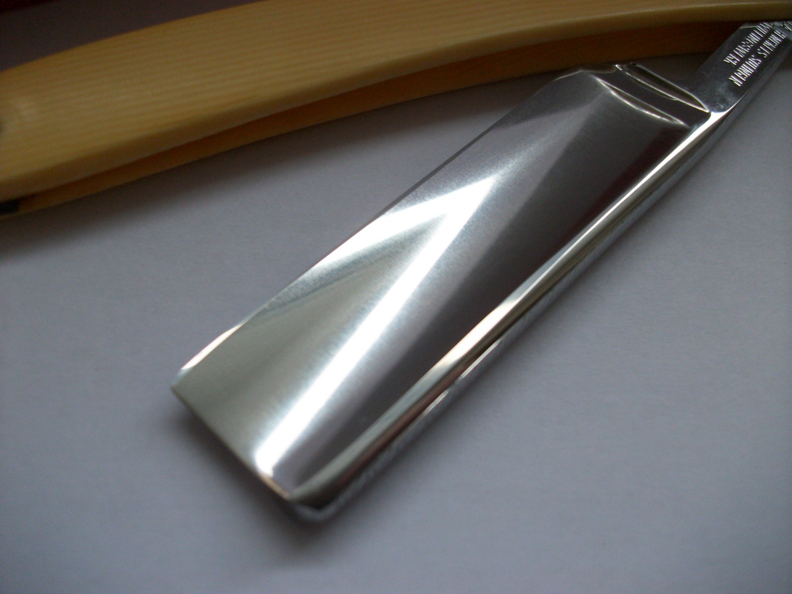 Состояние: Углеродистая сталь. Заточена и готова к бритью. При ширине полотна 14мм имеет очень массивный эрль и обушок, за счет этого в небольшой бритве чувствуется не присущая таким габаритам мощь. Цена: Продано Доставка включена. Spoiler Show