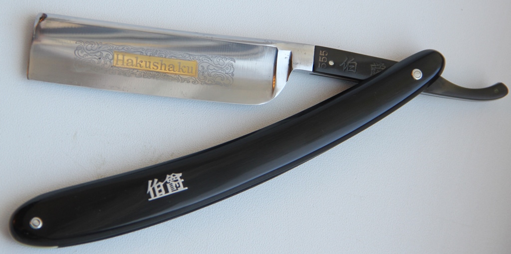 HAKUSHAKU 555 от компании TAKIGAWA.CO Ширина полотна-21.5 мм Толщина обушка-7 мм! Полная вогнутость. Углеродистая сталь. Середина 20-го века производства. Бритва в прекрасном состоянии.Никогда не была в пользовании. Только от масла оттер. Ничего не разбиралось и не ремонтировалось.Кромка и сталь чистые, не считая некоторого количества незначительных и еле заметных мелких "точек" на клинке, в одном месте. Но, ничего не стал трогать, чтобы не нарушить родной гринд полотна, да и не было в этом смысла, т.к. никуда это дальше не пойдет, в будущем.(даже на фото не видно).Бритва тяжёлая, за счет своего толстого обушка и будет удобна для контроля процесса бритья, особенно новичкам. Эффектная и практичная пластиковая накладка на эрле будет также удобна в плане ухода за бритвой:не нужно постоянно вытирать район осевого пина от влаги.Отличная "звенящая" сталь способна выдавать качественное и мягкое бритьё.Идеальная геометрия изготовления-кромочка равномерна по всей длине и еле заметна. Бритва заточена и готова к бритью. Цена-11500 р с доставкой ПРОДАН Spoiler Show