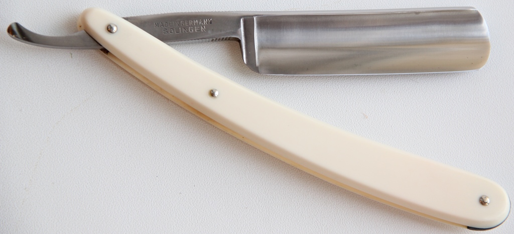 HENCKELS ZWILLINGSWERK-SOLINGEN.Модель 472 Ширина поотна-20 мм Толщина обушка-5.5 мм Полная вогнутость. Середина 20-го века Бритва в хорошем состоянии. Разобрал, ремного почистил полотно и снова собрал,заменив пины и добавив внутренние шайбы. Бритва парикмахерская, так что немного уточен носик,но еле заметно и не повлияет на дальнейшее использование.Плашки на оправе немного деформировались от времени, но клинок закрывается, ничего не цепляя.Поэтому ручку не стал менять, за ненадобностью. Кромочка равномерна по всей длине.В общем и целом бритва неплохая, послужит еще много лет и совершенно недорогая. Не пропустите! Цена-3900 р с доставкойПРОДАН