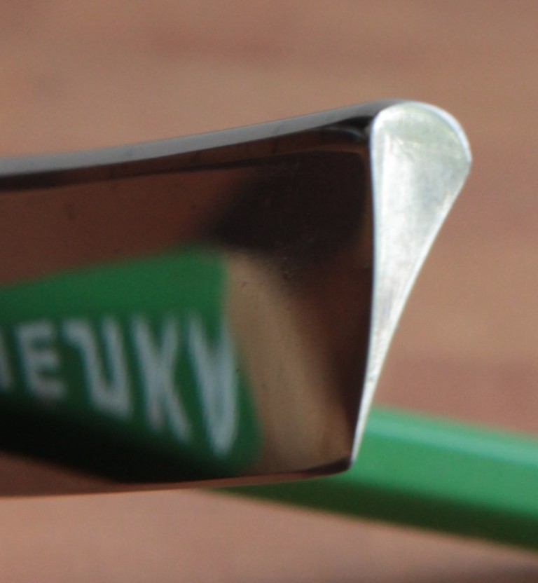 Форма лезвия в точности напоминает форму японского камиссори или профиль классического японского ножа.