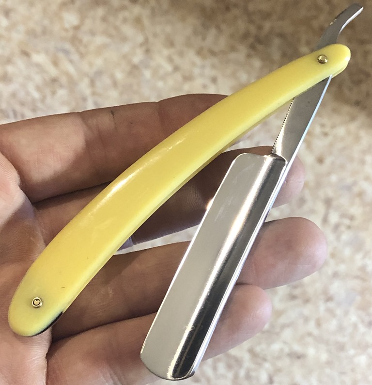 Ширина полотна-17,5 мм Толщина обушка-4,5 мм Полная вогнутость. Углеродистая сталь. Бритва хоть и немного пользованная,но находится в хорошем состоянии.Разобрал, почистил полотно и снова собрал, заменив родной пин на немецкую втулку, с добавлением внутренних шайб.Идеальная геометрия.Бритва заточена и готова к бритью. Цена-3300 р с доставкой ПРОДАН Внимание! Важная информация! Spoiler Show
