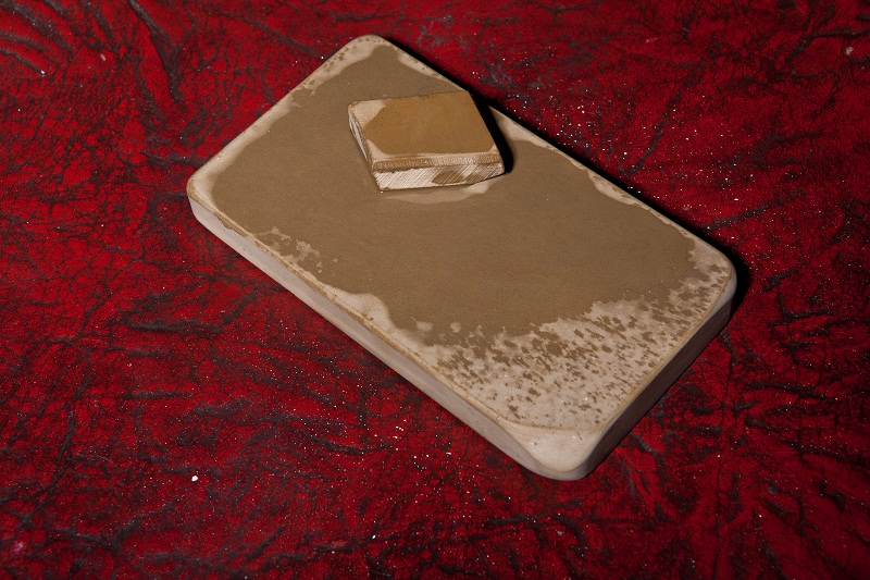 Размеры 142х79х15мм, поверхность доведена, все сколы убраны и заовалены. На обратной стороне присутствует некий "цемент" (по всей видимости на основе крошки самого камня).