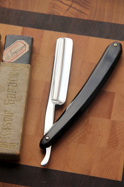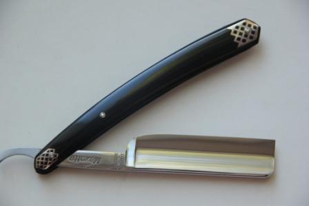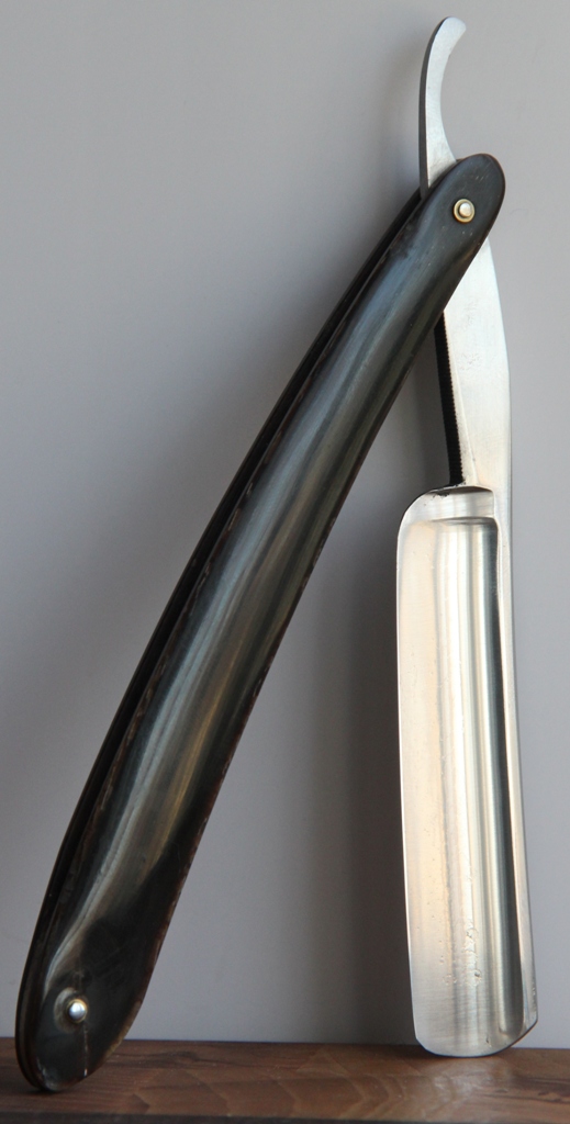 Ручку из натурального рога забрал от старого француза 19 века, почистил полотно, но без фанатизма. На лезвии остались несколько каверн( на фото видно), но это никоим образом не влияет на качество бритья. Сталь чистая, кромка чистая, без проблем. Идеальная геометрия.Бритва заточена впервые, проходит тест на рез волоса. Бритьё мягкое и комфортное.Удобный вариант для новичка и по цене-качеству.