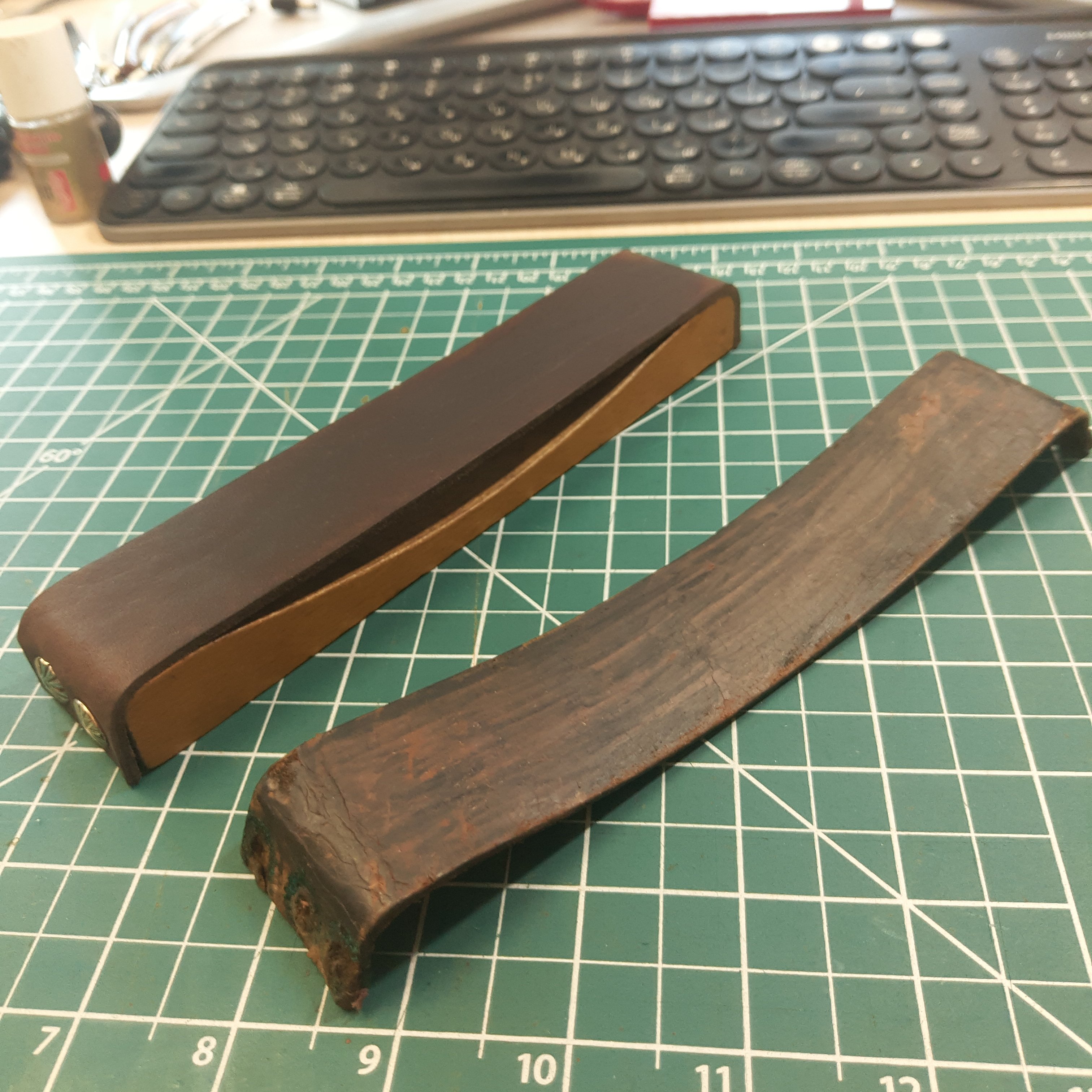 Ремонт ремняПодарили мне тут конский ремешок десяток лет назад изготовленного отечественным мастером. Ну и я решил привести его в порядок. Снёс восковый глянец наждачкой 100#. И дальше до 2000#.