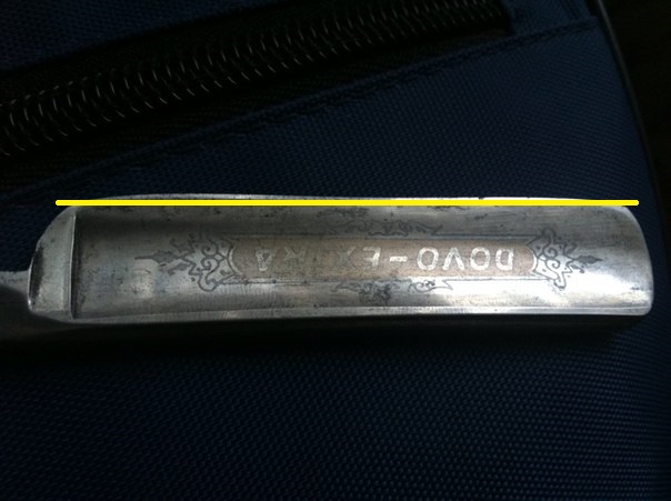 По ремонту: бритву "улыбноло" время и прежние хозяева(ин). Выровнять кромку, слегка чистонуть, рисунок с полотна убрать нафиг, ибо кромка практически на него наедет. Сзади возле пятки подозрительное место, неизвестно вырулит там кромка или будет сыпаться. Ручку вычистить, полирнуть. Собрать и попытаться заточить. Re: Подскажите возможно ли бритву вернуть к жизни, востановиА рисунок зачем стирать, ведь так она интереснее, да и без рисунка будет не очень... Зачем же так сразу убивать бритву?