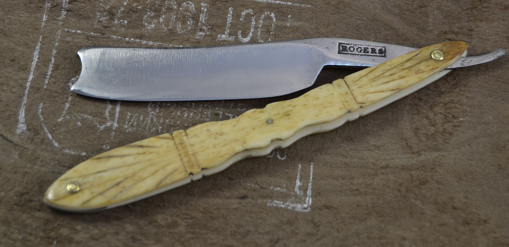 Надеюсь кому нибудь пригодится мой опыт спасения рукояти очень старой бритвы. Кость до того стала хрупкой, что начала ломаться при каждой неосторожной манипуляции, к тому же она никогда не была достаточно толстой. Ширина одной половинки была около 1.3, другой около 1.6 мм.