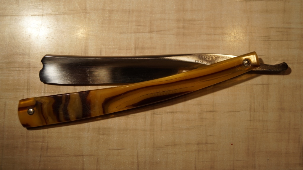 Бритвы ковались. Эрль шел в основном на клин. Сужался к хвосту и расширялся к полотну. При склепывании пакета с закрытым в ручку полотном, соединение уплотняется на столько, что при открывании в рабочее положение может закусывать острые грани вершинки ручки(той части что после пина). Вот и снималась фаска. Но это всего лишь версия. А так, если не копать, то просто красиво. -Рэбе, скажите, зачем нам обрезание? -Ну, во-первых, это красиво...