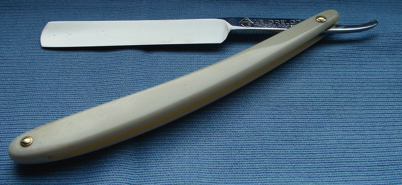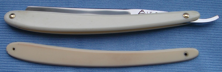 Re: Ручка (оправа) бритвы - изготовление/ремонтВот ещё примерчик использования/сочетания современных материалов ручки, правда для старого француза. Но это Элфорин - современный заменитель/имитатор слоновой кости, сейчас идет на бильярдные шары и накладки клавиш для фоно.