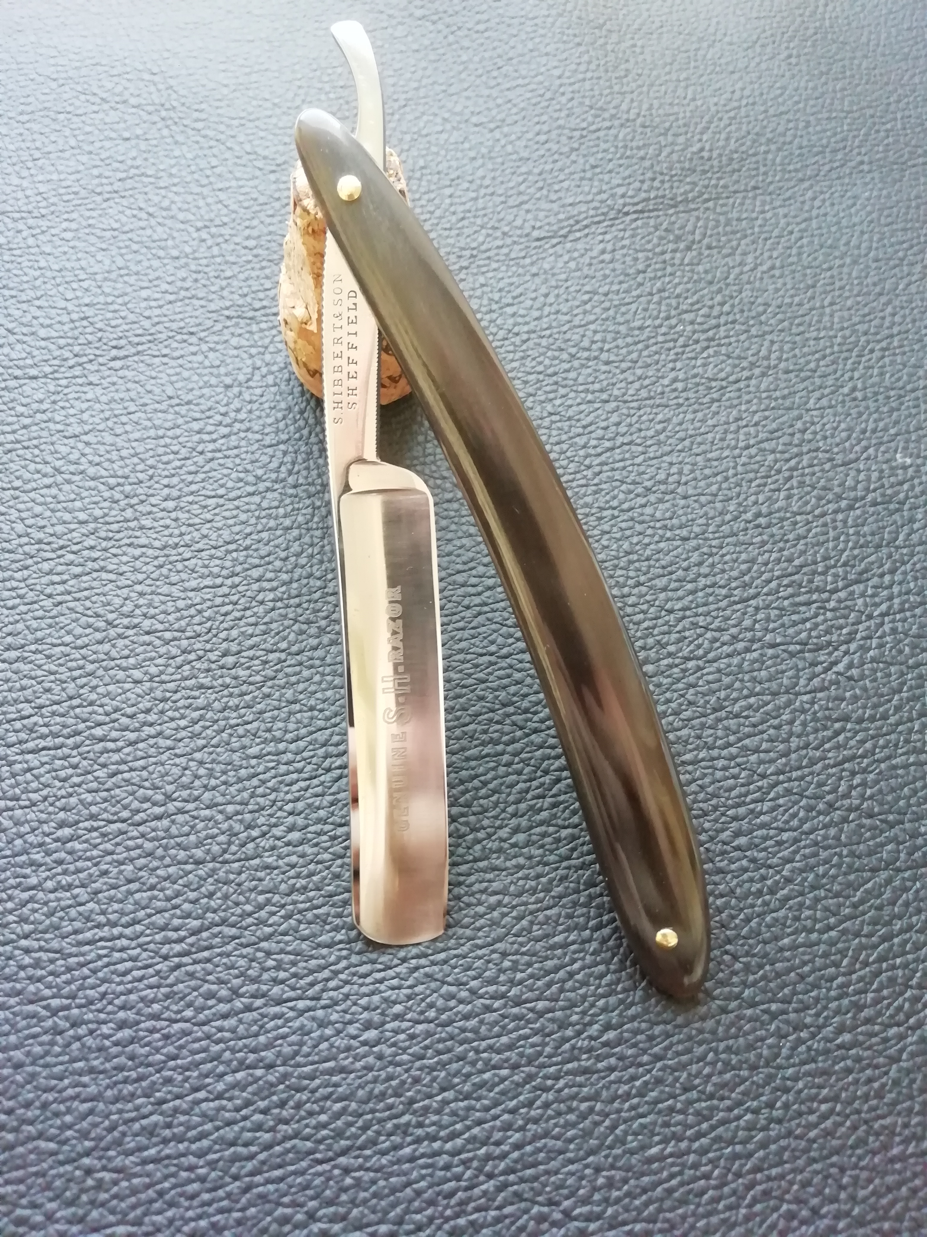 Ручка (оправа) бритвы - изготовление/ремонтВсем добра, вот решился сварганить рукоять с мать его рога Для S. HIBBERT & SON, Плашки полупрозрачные больше к тёмному, проявляется сероватая структура материала, наполировал ох и блестит. Хотел со светлого рога, но гад при варке для выпрямления слоями пошел
