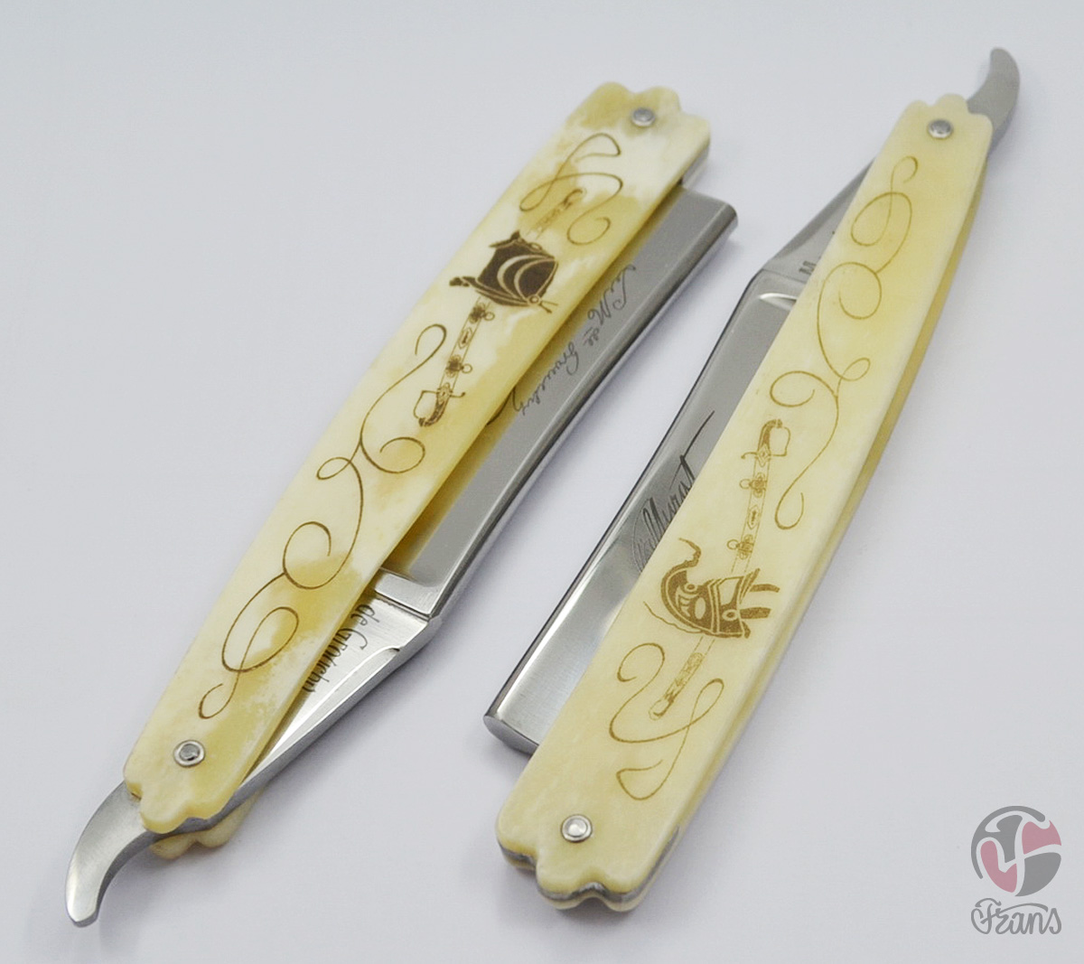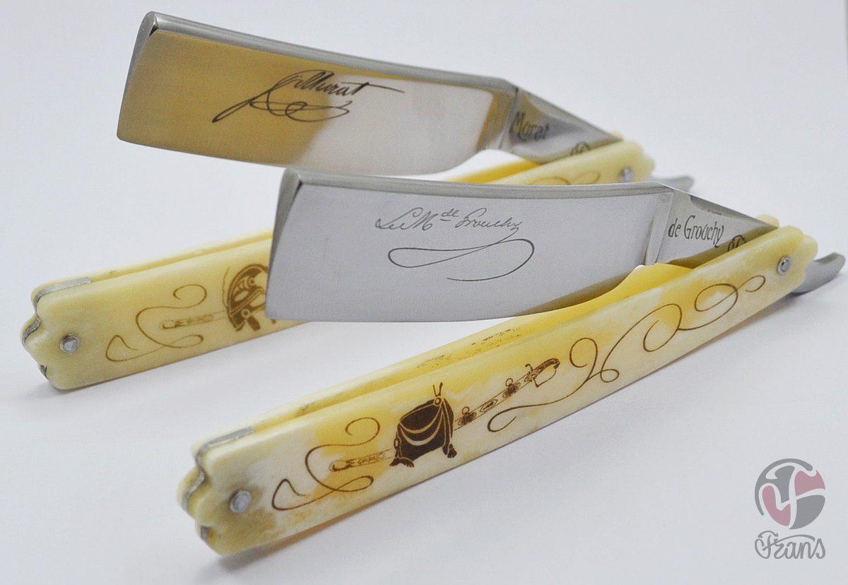 Вот у меня следующая тема два клинка(пара) стилизованы под французские бритвы наполеоновского периода.