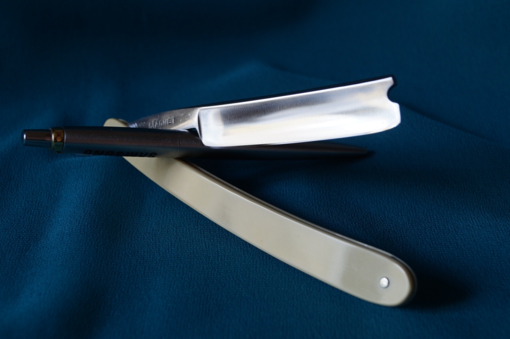 Ручка из кости КРС, состояние очень приятное, заточена и готова к бритью. На полотне, возле обушка, есть пару следов времени ( микро каверночки ), будем считать что это родинки, убирать не стал, геометрия бритвы- превыше всего. Размеры: ширина 14 мм, обух 3,8 мм . Цена: продан Daniel Peres Show