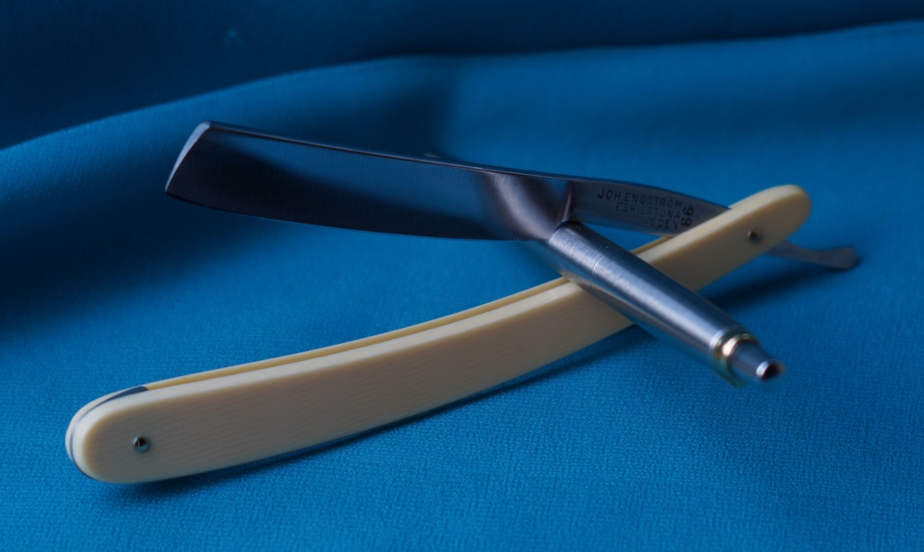 Размер 9/16 , ручка из целлулоида, клинышек из олова. Заточена и готова к бритью. Цена: продан . Engstrom Show
