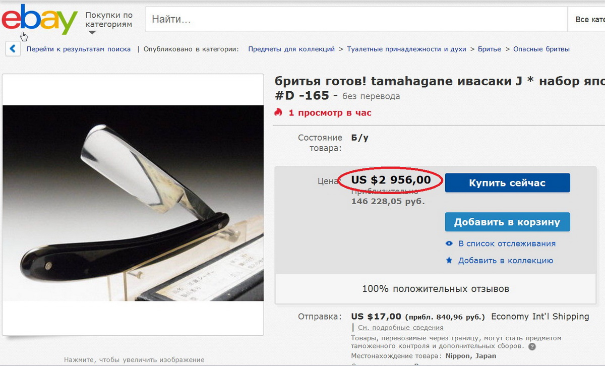 Re: Аукционы: плагиат, развод и "великолепные" описанияОчередная бритва из тамахаганэ за 3000 мертвых президентов: http://www.ebay.com/itm/Shave-Ready-TAM ... 19f7efeb3d" onclick="window.open(this.href);return false;