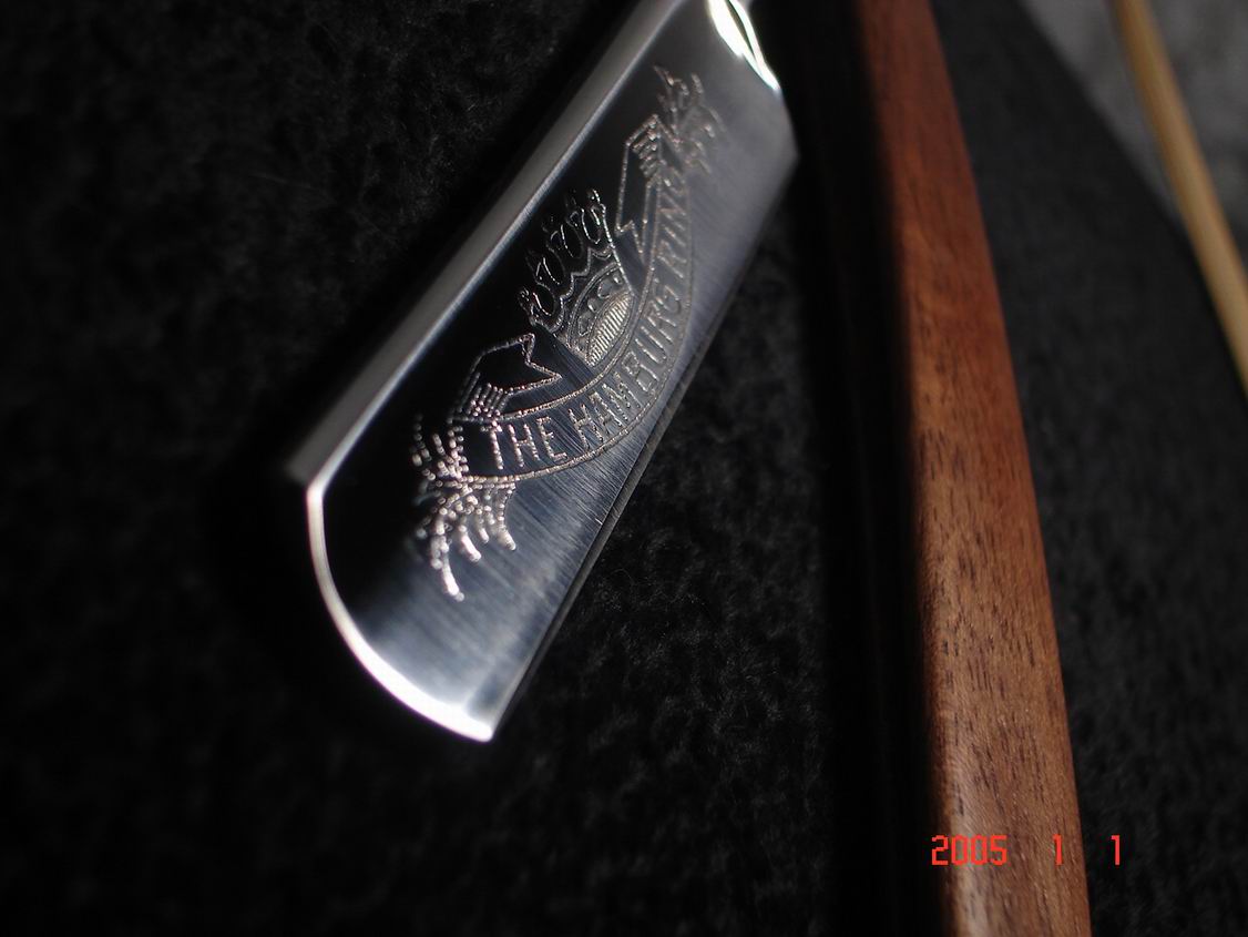 Скорее всего бритва в пользовании не была ,заводская шлифовка , бритва была разобрана , отполирована , ручка восстановлена , дополнил конструкцию шайбочками на осевом пине , что бы избежать трения ручки о полотно бритвы .