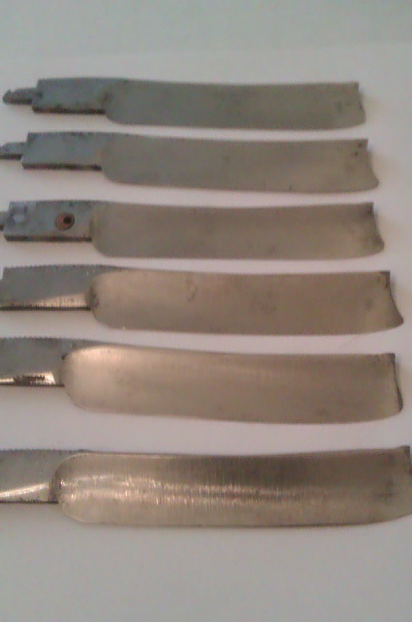 Re: набор W. HAWCROFT & SONА должен быть слон. Ну то так. По клинкам: Набор неполный, вместо семи шесть. Из этих шести можно выбрать 3-4 нормальных клинка. Один кстати просверлен, пытались из него бритву делать.... умельцы. Ручку тоже от вачи видно собачили. Абразива не вижу на клинках. Клеймо да, проштамповали плоховато, не влезло все. Ну брак одним словом. А так баксов 80 в хороший день. Добавлено спустя 1 минуту 34 секунды: Наверняка(больше чем уверен) в замке полотна люфтят со страшной силой.