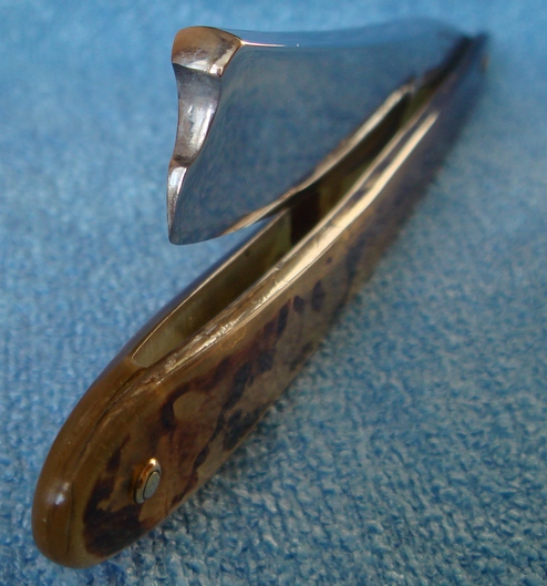 Размер 5/8 Состояние: клин, ручка рог стилизованная под черепаху, клин олово, бритва с широким эрлем. Заточена Продано. Фото Show