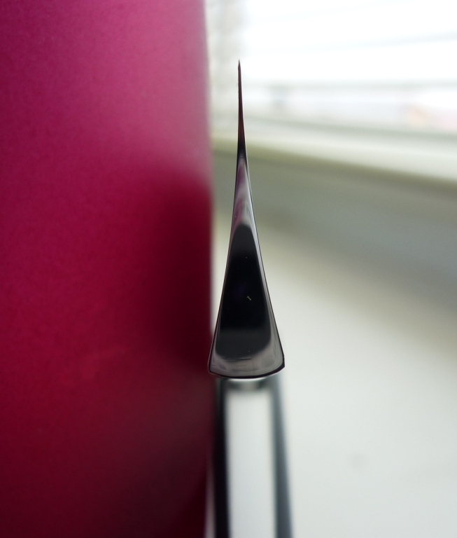 Re: Бритвы от GVIkНаоборот, эта меньше всего из всех похожа на клин. Диаметр камня 150 мм. Для бритья себе бы такую захотел оставить, очень удачно оттермичил. Фаска узкая - заточилась легко