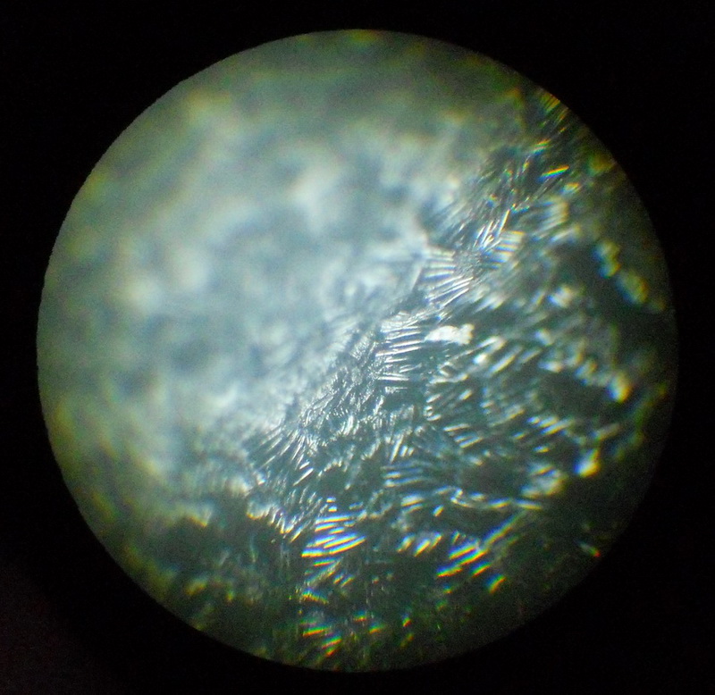 Пусть знатоки развеют в пух и прах мои доводы. Рог это слоистый материал природного происхождения, состоящий пластинок из белка кератина. Старый рог часто расслаивается и дает линейные трещины, направленные чаще всего между слоев. Но я неоднократно встречал на старом роге выкрашивание и краевое и в толще материала. Края деффектов при этом блестящие и больше походи на выкрашивание эбонита, а не на рог. При этом данный деффект почему то я наблюдал только на безклиновой оправе, с уступом на половинках. Для исследования взял две роговых плашки от двух оправ, с клином и без. 1. Поверхность (макро). На "безклиновой" следов распила и точения нет, мало того поверхность гладкая, а уступ с равномерным закруглением угла, как было бы при отливке в форме. С внутренней стороны на "клиновой" плашке имеются следы распила и точения. 2. Цвет(пигментация). Посмотрев на просвет, я увидел что на обоих имеется неравномерная пигментация. Но на "клиновой" более четкая чем на "безклиновой" 3. Сколы. Сколы "безклиновой" плашки имеют блестящие края и округлую форму, что вообще странно для слоистого материала. Сколы "клиновой" плашки очень мелкие, с матовыми краями и имеют неглубокий характер в виде сколовшихся чешуек. 4. Поверхность (микро). При исследовании под увеличением х80, поверхность сколов "клиновой" плашки похожа на плетение ткани габардин, имеются участки с волокнами разной направленности размерами 50-80 микрон. Сколы "безклиновой" плашки имеют плотную чешуйчатую поверхность в виде черепичной крыши. Что сделано из компактного рогового вещества, а что из опилок и пыли? Выводы делайте сами.