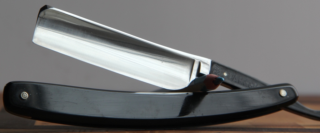 Ширина полотна-21.5мм Толщина обушка-5.5 мм Бритва середины 20 века изготовления, заточена впервые. Сталь чистая, без проблем. Пластиковая ручка. Накладки на эрле и хвостовике. Очень удобная и красивая бритва. Полностью готова к пользованию. Цена-6000 р, с доставкой.ПРОДАНА Spoiler Show