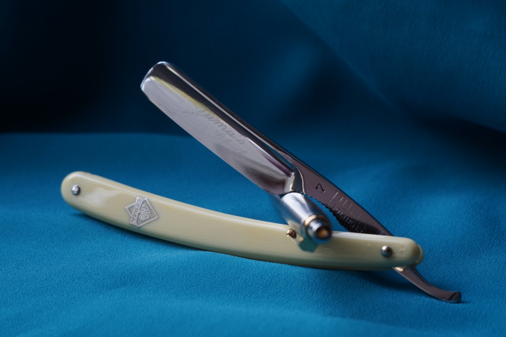 Made in Germany, from Best Puma Steel. Параметры: Размер 9/16 ( 14,3мм) Ручка -целлулоид Бритва без реставрации, легкая полировка и заточка. РК толщиной в ус Пумы. Все нюансы видны на фото, в жизни они не так заметны, но рука не поднялась их убирать, т.к. не увидел в этом необходимости и для её возраста это простительно. Сталь и геометрия бритвы выше всяческих похвал, шикарный рез. Продана киска Puma №7 Show