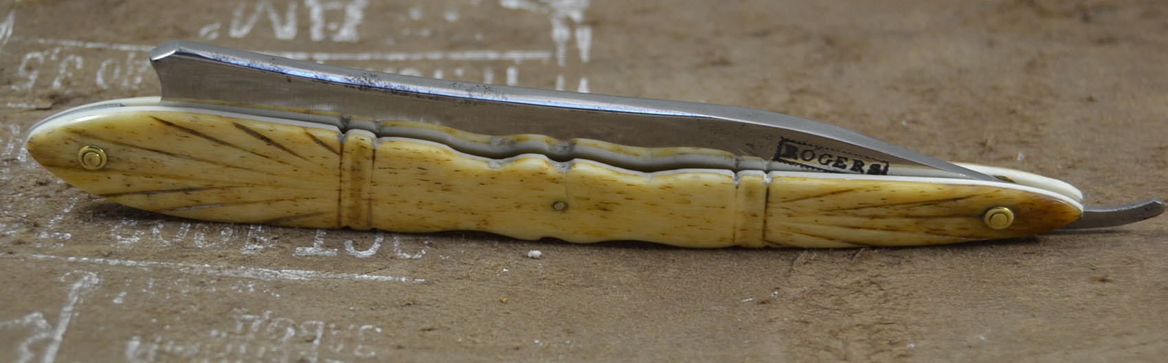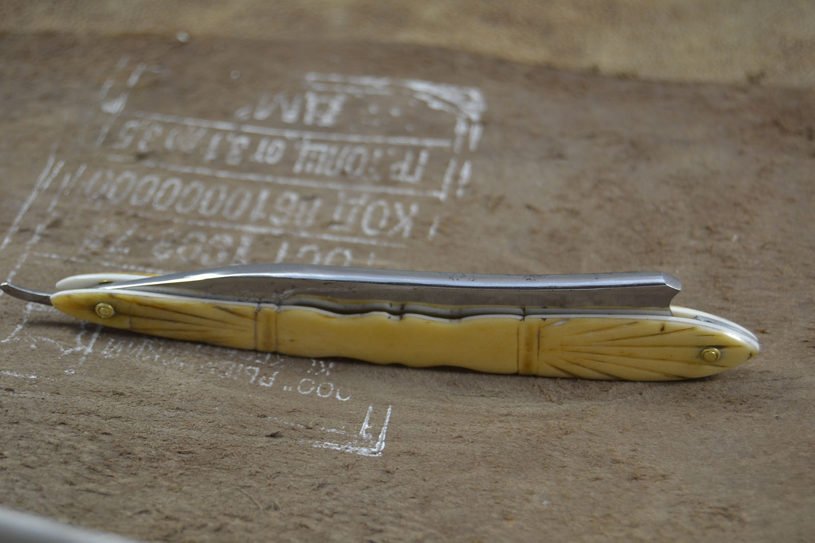 Надеюсь кому нибудь пригодится мой опыт спасения рукояти очень старой бритвы. Кость до того стала хрупкой, что начала ломаться при каждой неосторожной манипуляции, к тому же она никогда не была достаточно толстой. Ширина одной половинки была около 1.3, другой около 1.6 мм.