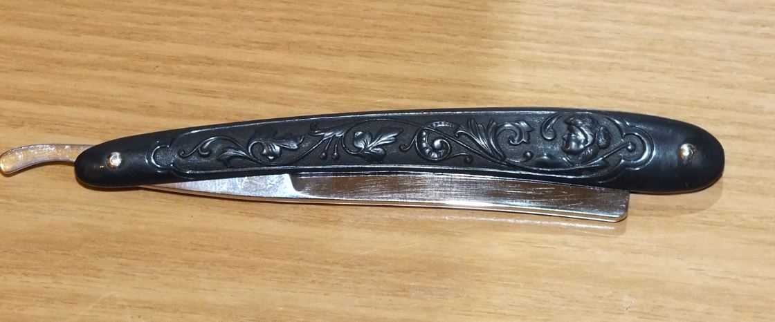 был клинок без ручки, со следами хранения, ржавчиной. Отдал мастеру заточнику ANATOL который привел бритву в порядок, заточил и поставил ручку.