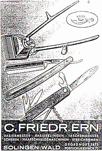С. Friedrich Ern, Ern-Rasiermesserfabrik, Solingen-Wald, с 1935 года находилась на Itterbergerstrasse, в 1939-86 годах на Wittkullerstrasse, 51.