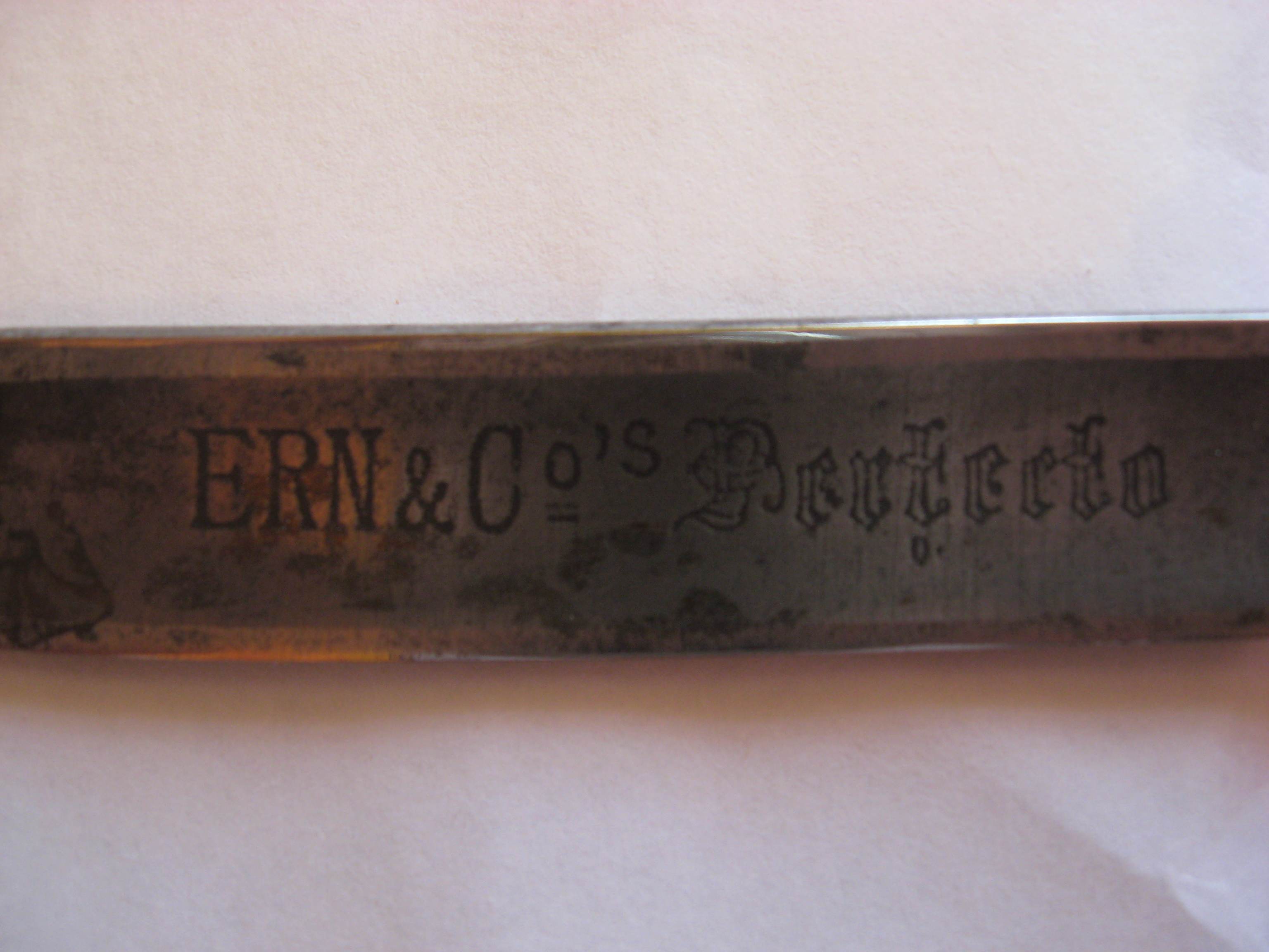 В течение 1914-18 годов было сделано много очень хороших боевых ножей с маркировкой ERN над надписью Wald, Rheinl. Ножи маркировались так же, как бритвы.