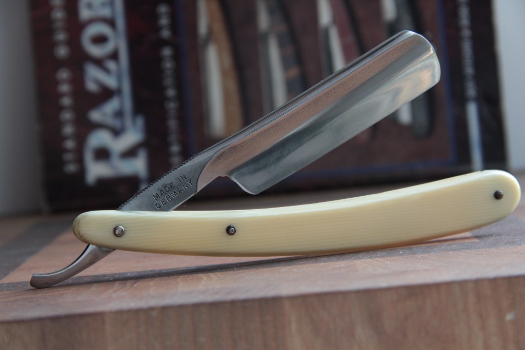 Ширина полотна-24 мм!! Почти дюймовый размер!! Толщина обушка-6 мм. Бритво совершенно непользованная.Только вытащил из коробки и протёр от смазки. Точную дату изготовления сказать затрудняюсь. Но, думаю, вторая половина 20 века. Форма лезвия-полная вогнутость. Пластиковая оправа, сталь углеродистая. Ничего не делал с бритвой. Как вчера с завода. Заводская заточка. Бритва будет заточена и полностью подготовлена к бритью. Цена-250$ со всеми расходами.ПРОДАН Spoiler Show