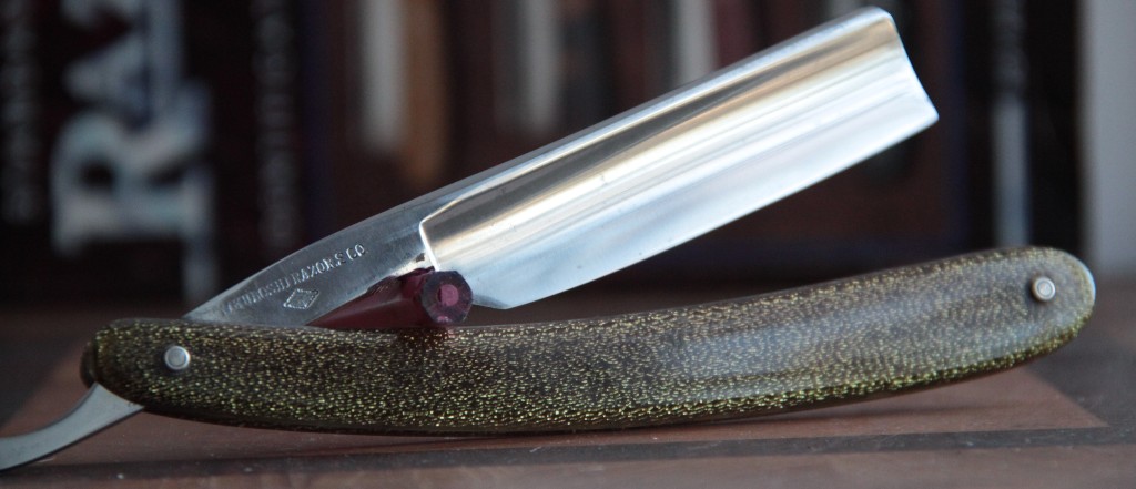 Тяжёлая бритва, в красивой перламутровой оправе.Ничего не разбиралось. Всё родное. Полотно в хорошем состоянии. Кромка чистая. Идеальная геометрия изготовления. Шикарно бреет. Проверено. Мягкое, чистое бритьё. Смело можно рекомендовать такую бритву в качестве первой для новичка.