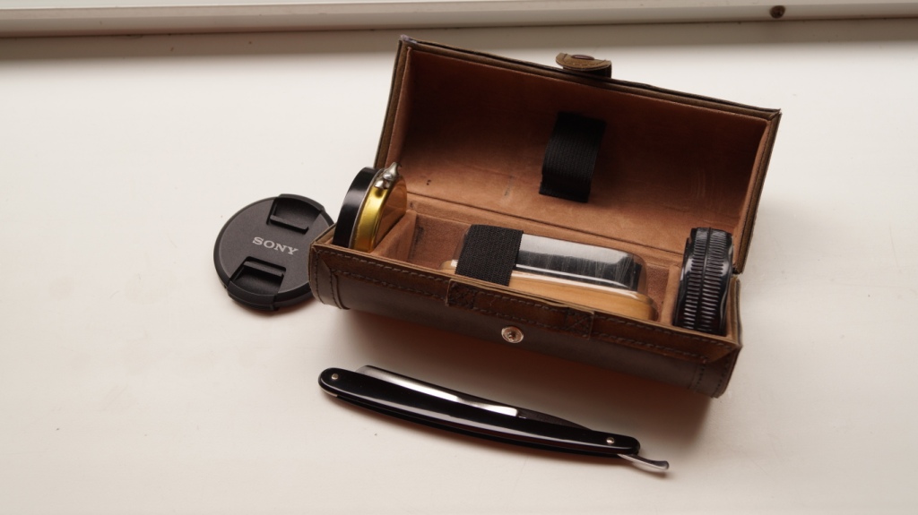 В планах вложить в несессер мыло и "упаковать" помазок, что бы оставшаяся влага не попадала на бритву. Самое важное это компактность, такой несессер не будет занимать много места в любой походной сумке или рюкзаке.