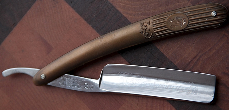С бритвой ничего не делал, не разбирал и не ремонтировал. Всё родное. Только немного протер полиролью вручную полотно от патины. Небольшие потемнения на металле остались, но для бритвы такого возраста, из углеродки, это нормально,да и не хотелось портить заводской гринд.