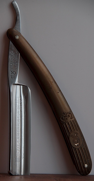 С бритвой ничего не делал, не разбирал и не ремонтировал. Всё родное. Только немного протер полиролью вручную полотно от патины. Небольшие потемнения на металле остались, но для бритвы такого возраста, из углеродки, это нормально,да и не хотелось портить заводской гринд.