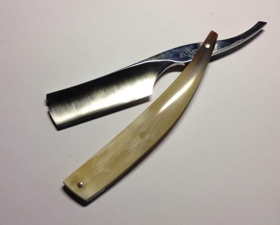 По просьбе покупателя переделал бритву Волна, вернее заменил ручку. Лежал у меня в подвале в дальнем ящике коровий рог. Не вспомню даже, как он ко мне попал. Но явно что-то из него хотели сделать высокохудожественное, с заклепками медными и пр... Spoiler Show Одним ударом дерева не срубишь. . Татарская поговорка