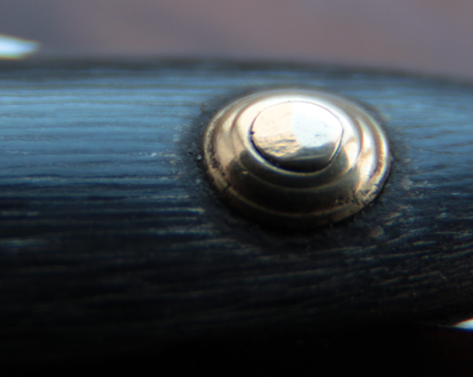 Следов пользования не заметил, но оправа снималась. По всей видимости для того, чтобы добавить внутренние шайбы.Тяжёлая, практичная бритва. Следов коррозии или ржавчины нет.Будет заточена и готова к бритью.