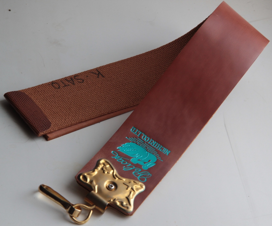 В меру мягкий, льняной холст, предназначенный для правки бритвы с немного подсевшей остротой, либо для свежезаточенной бритвы, чтобы не царапать дорогую кожу.