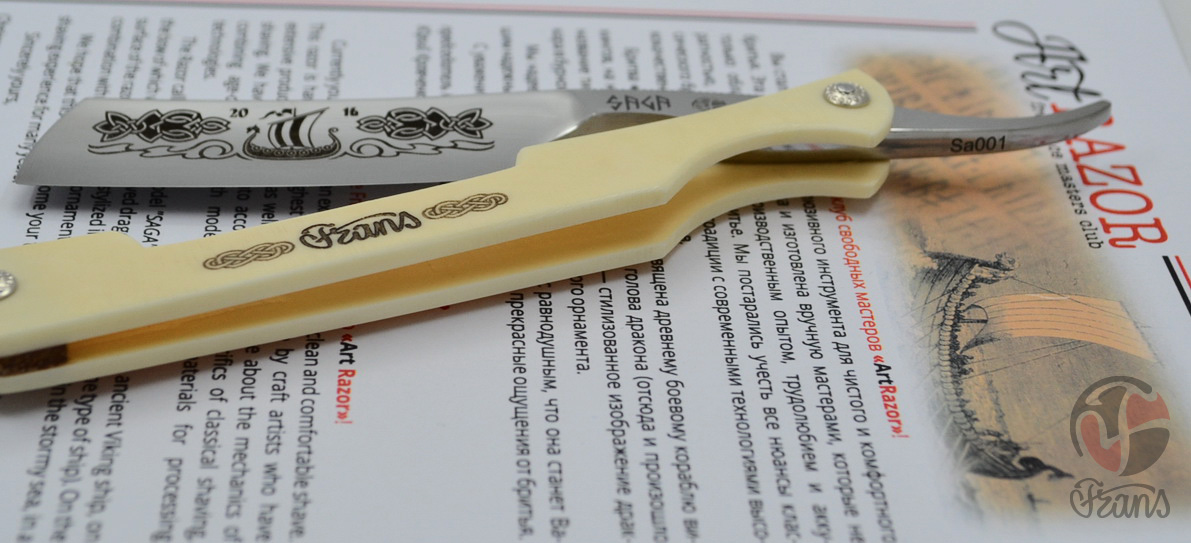 Проект Saga На скандинавскую тему. Участники те же. Frans, GVIk, Toivo Изменилась контора по лазерной гравировке. Ширина : 6/8, вогнутость 1/2, ручка - бивень моржа(нарочито грубая обработка) Серийный номер: Sa001