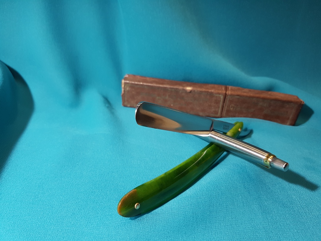 Параметры: ширина 6/8 (19мм) обух 5.2 мм. Ручка из пластика с весьма редким видом фиксации клинка. Состояние: близкое к идеальному, точилась может один раз и то видимо не достаточно, т.к. полотно видно что не пользованное. Возраст бритвы первая четверть 20-го века. Бритва прошла предпродажную подготовку, правильно заточена и готова к бритью. ПС. Данная бритва с такой фиксацией клинка будет удобна для путешествий и командировок, ни когда не откроется случайно, гениальное решение. ПРОДАНО Cintinatus Show