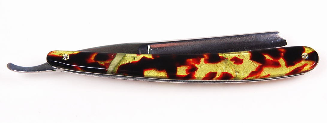 История: Дед решил отремонтировать бритву - ковырял заклёпку, хотел восстановить полотно. Восстановил - заклёпку сломал вместе с ручкой... Полотно таки достал... Как сказала женщина, которая принесла бритву, - он покрыл полотно никелем. Причём самое примечательное что сам! Вобщем его "никель" я смыл ацетоном... Подложку для растресканных ручек сварганил из корпуса ДВД-плеера. Ручки приклеил и собрал всё обратно. Недостающий фрагмент доливал специальным составом. Тема имеет право на жизнь! Вот только найти бы чем металл резать... Очень много времени ушло на обработку. Ремонт опасных бритв, звонить с 11-00 до 23-00, +79267729357, (viber, whats app, telegram, VK), спросить Олега.