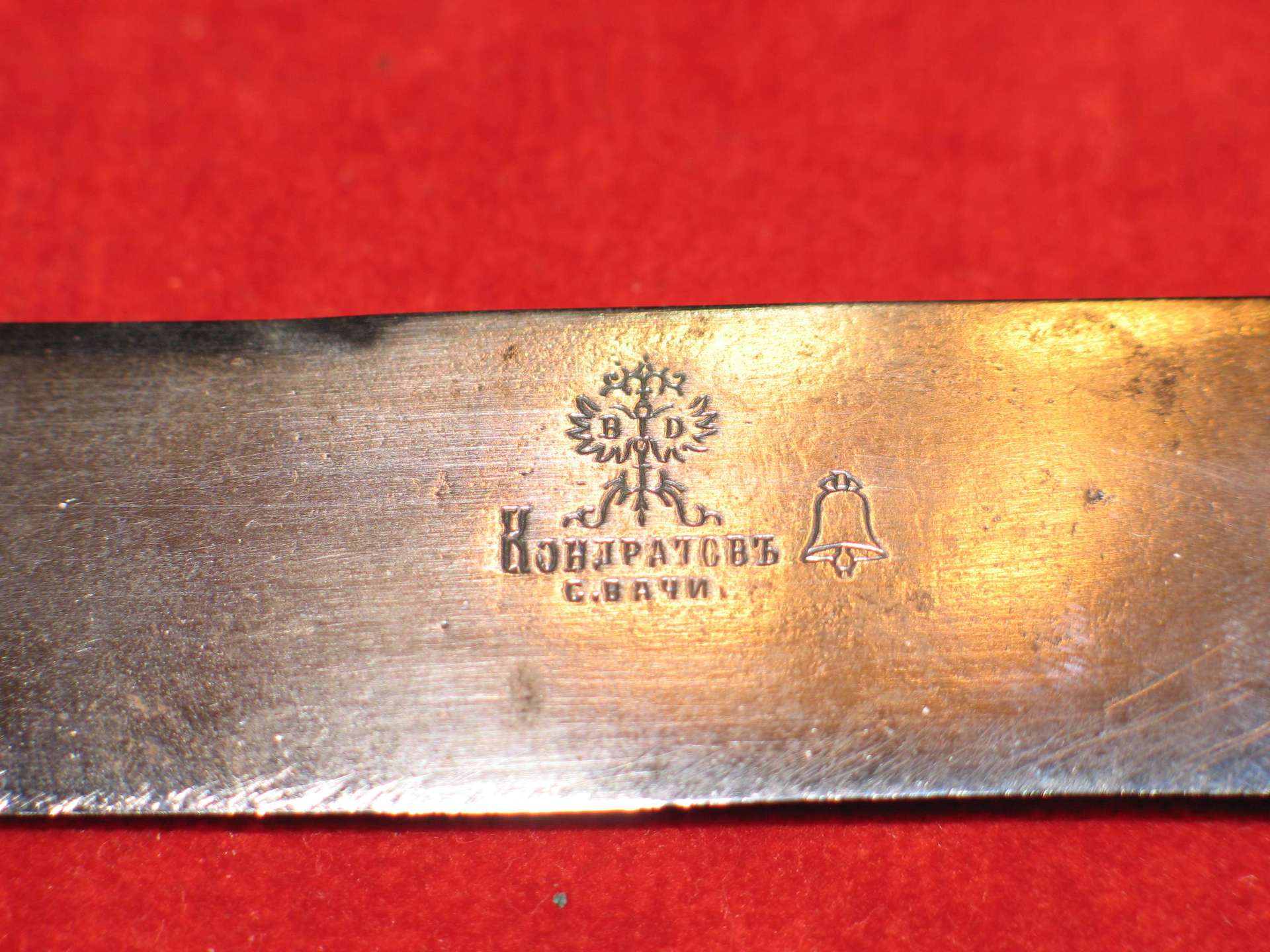 Аукционы: плагиат, развод и "великолепные" описанияСудите сами...источник официальный Среди владельцев «заводов» выделились местные крестьяне Кондратьевы. Д. М. Кондратьев в 1831 году работал по найму у павловских мастеров, а в середине тридцатых уже основал в Ваче «ножевую фабрику». Его сын Д. Д. Кондратьев расширил производство отца, и на его «фабрике» в начале пятидесятых годов работало, не считая надомников, восемьдесят пять работников. Они выпускали продукции на двенадцать тысяч рублей. Через десять лет на этой фабрике была паровая машина и работало уже сто шестьдесят человек и триста являлись надомниками. Продукция оценивалась в семьдесят тысяч рублей в год. http://www.museum.murom.ru/wwwmus/afish ... /pr_28.htm